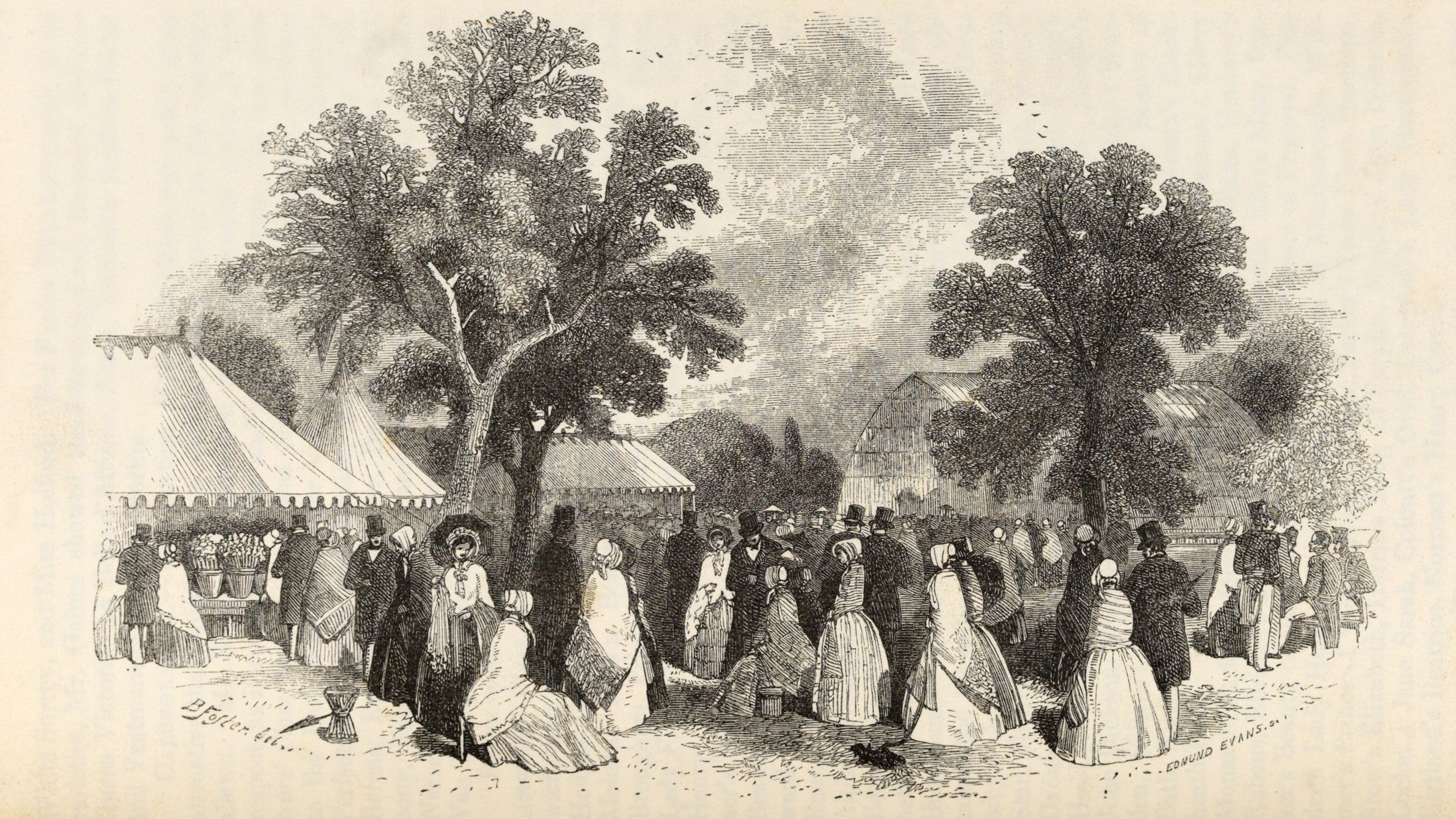 "The principal part of the English aristocracy are present at the Show, and mix indiscriminately with the tradesman, the mechanic and the gardener. This scene may be enjoyed by men, women and children for five or six hours at three shillings, sixpence each."